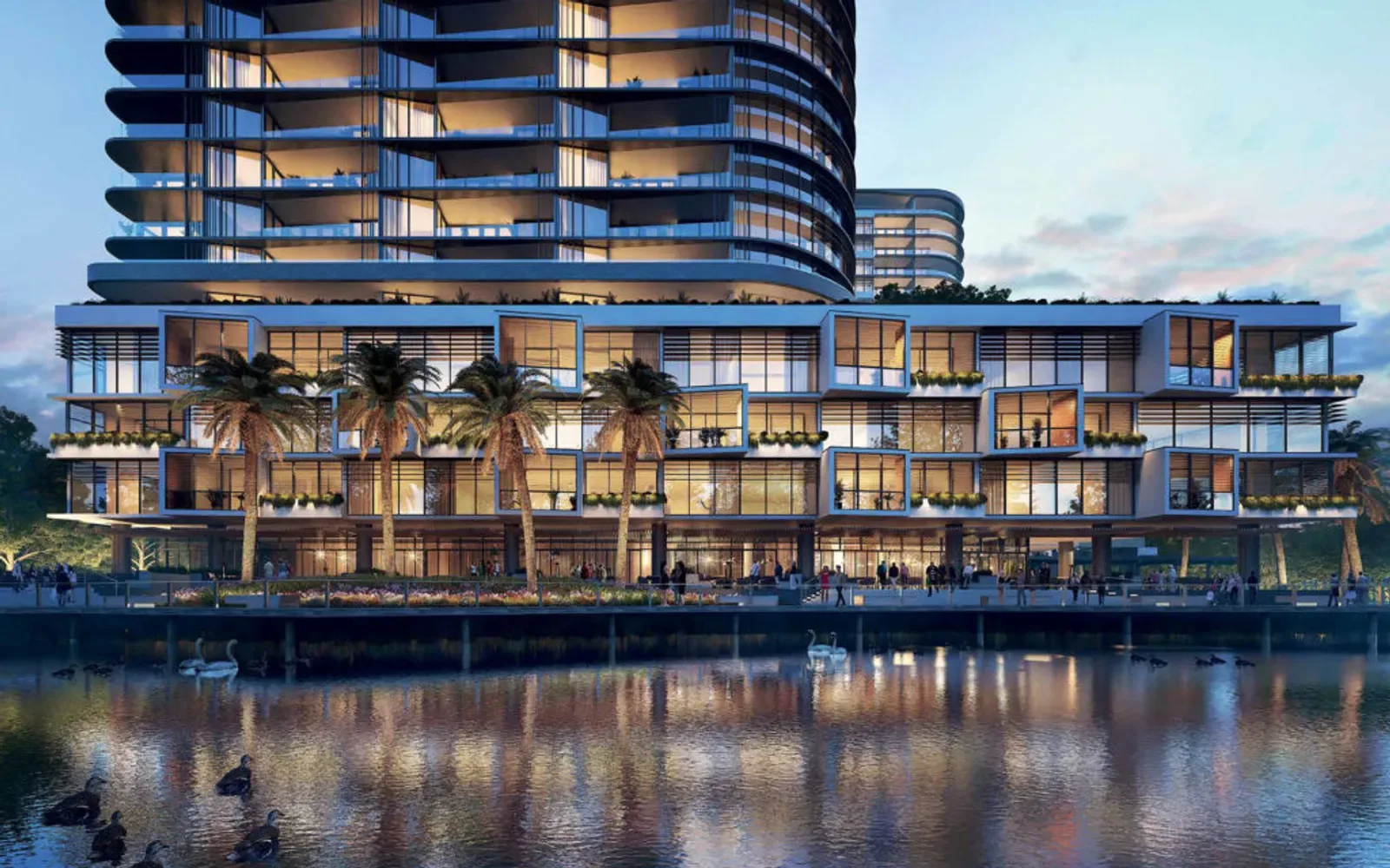 The apartments are full of light, and boast views over shimmering Norwest Lake, the famous Sydney skyline, or out across the Blue Mountains. Concierge style services are also available for residents, along with a glamorous pool and deck, and circular spa.