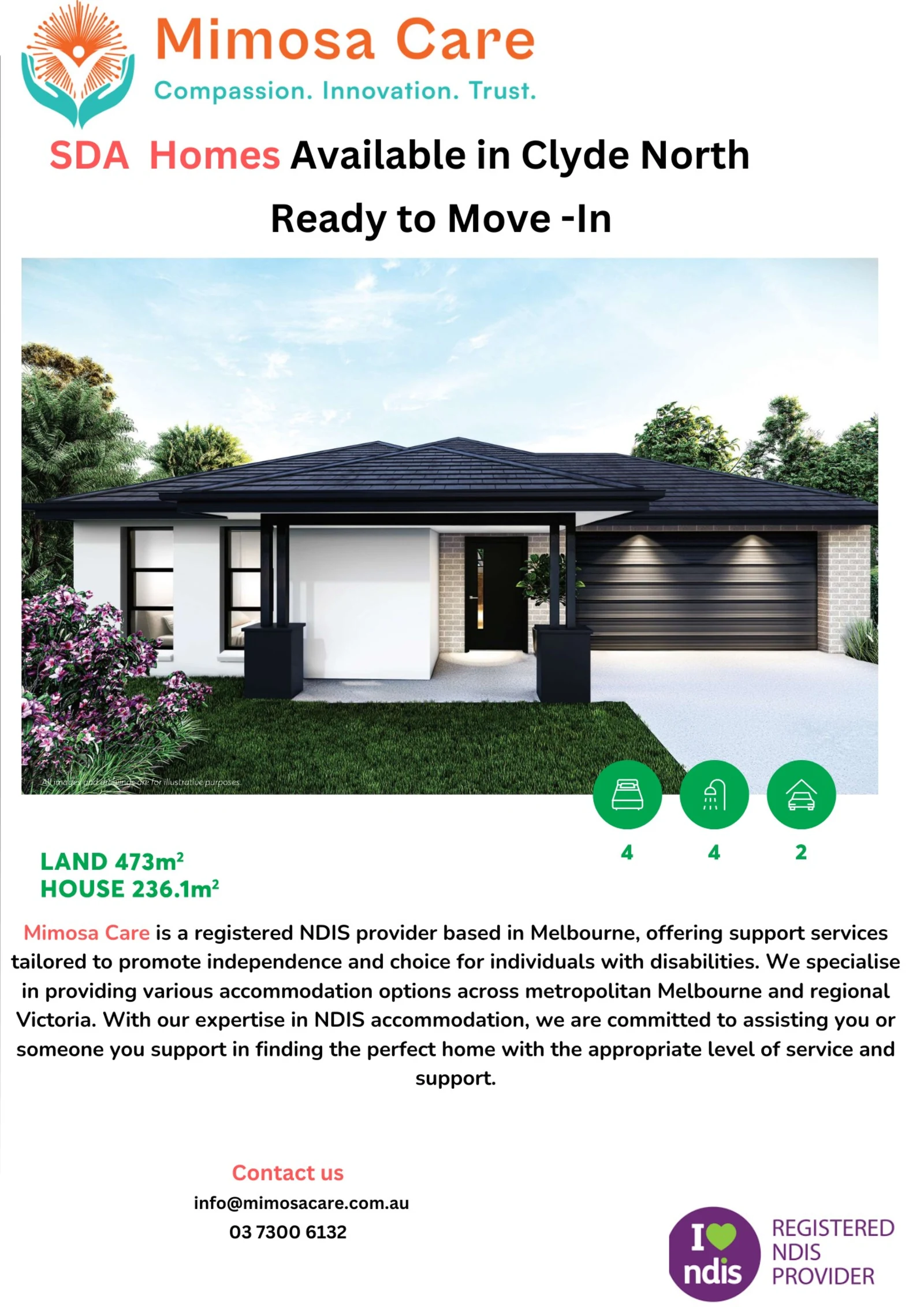 Mimosa Care is a registered NDIS provider based in Melbourne, offering support services tailored to promote independence and choice for individuals with disabilities. We specialise in providing various accommodation options across metropolitan Melbourne and regional Victoria. With our expertise in NDIS accommodation, we are committed to assisting you or someone you support in finding the perfect home with the appropriate level of service and support.